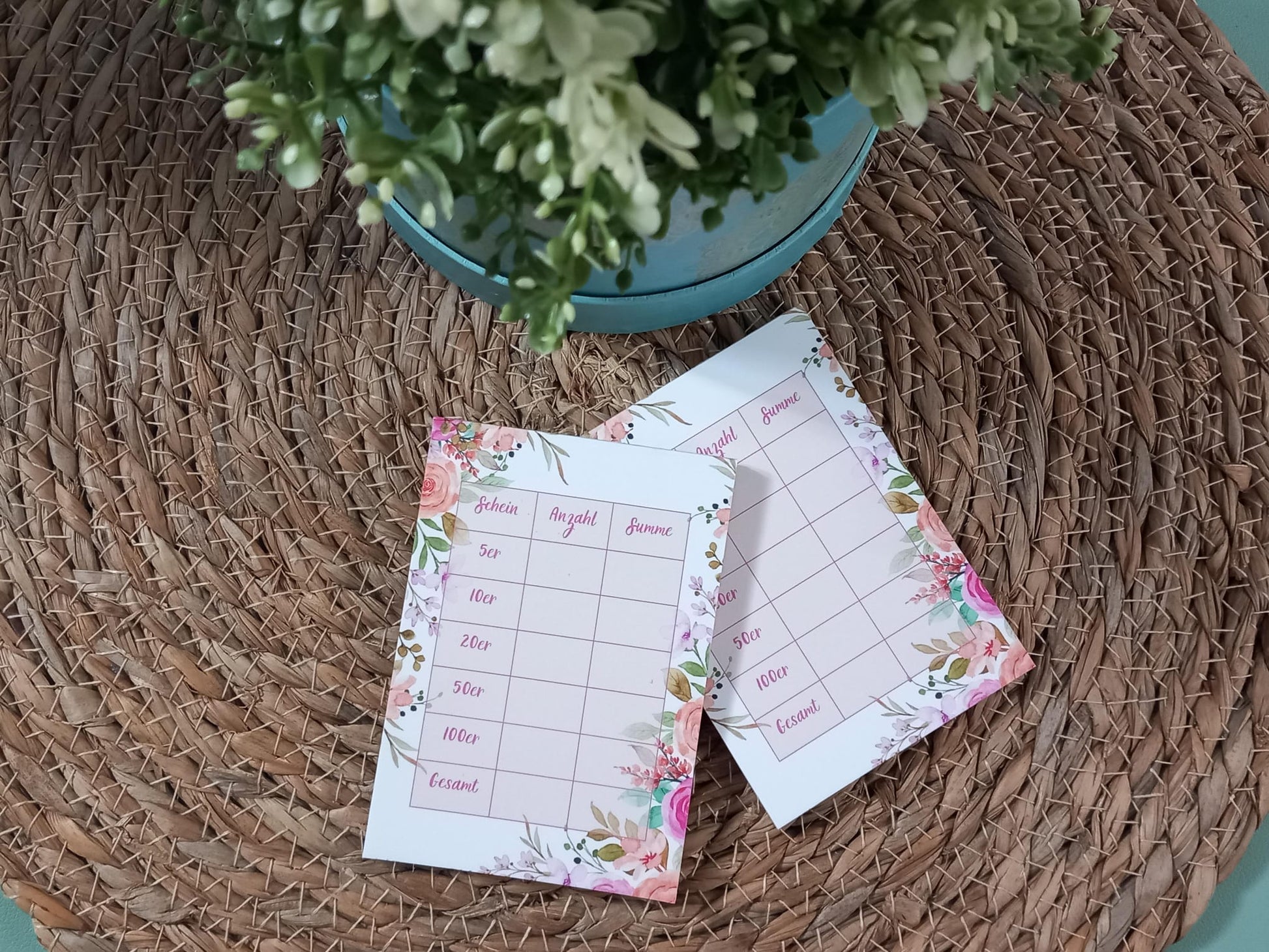 Auf diesem Block warten 50 Seiten darauf von dir ausgefüllt zu werden. Du hast dein monatliches Budget bereits aufgeschlüsselt und nun möchtest du zur Bank das Geld abheben? Dann mach es dir leicht mit diesem praktischen Helfer. Trage immer die gewünschten Beträge ein, die du brauchst um dein Wochenbudget einzuteilen.