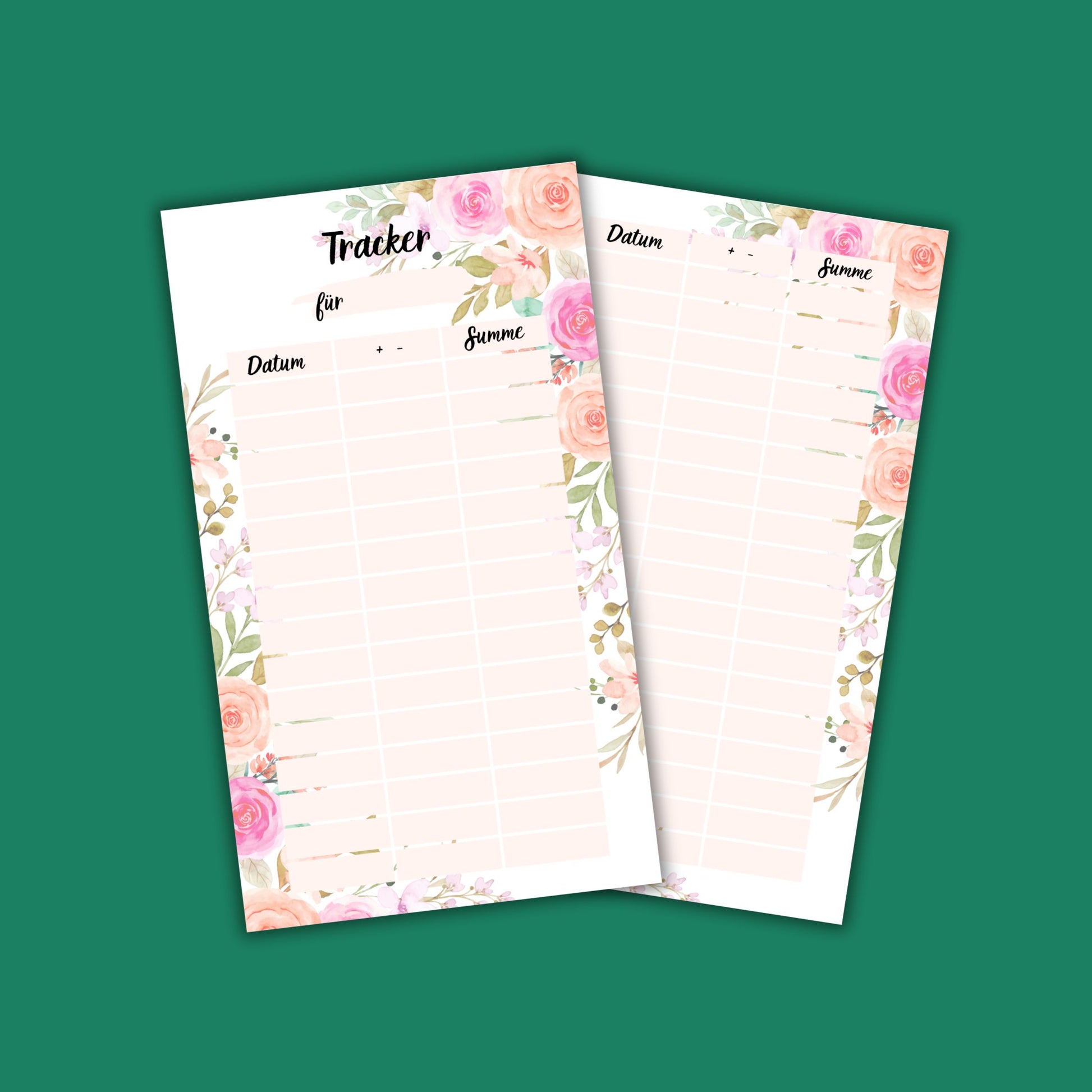 Budget Tracker sollten in keinem Budget Binder fehlen. Sie passen perfekt in die A6 Zipperhüllen deines Binders. Beim sparen bei der Umschlagmethode legen wir verschiedene Kategorien für Ausgaben und für Sparziele fest. Um den Sparerfolg verfolgen zu können, trägst du Einnahmen und Ausgaben auf dieser Seite ein. So hast du den perfekten Überblick, wie es gerade in deinem Spartopf oder deinen aktuellen Budget los ist.