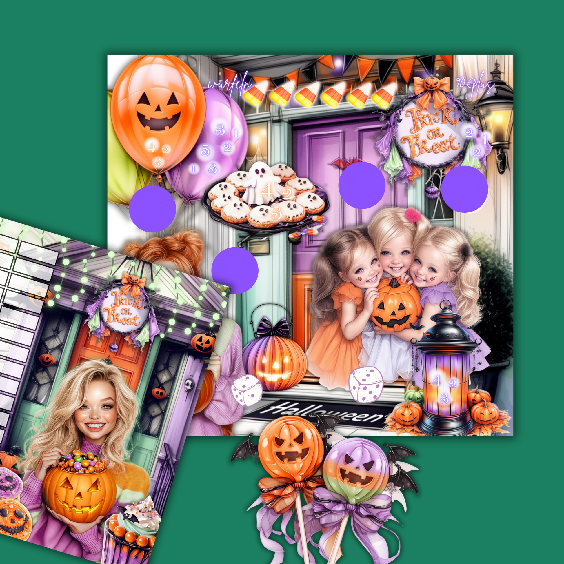 Mit dieser Klappkarte im Halloween Design kannst du rubbeln, würfeln und abstreichen. Auch unter den Rubbelstickern sind lediglich kleine Sparbeträge von unter 10 Euro.