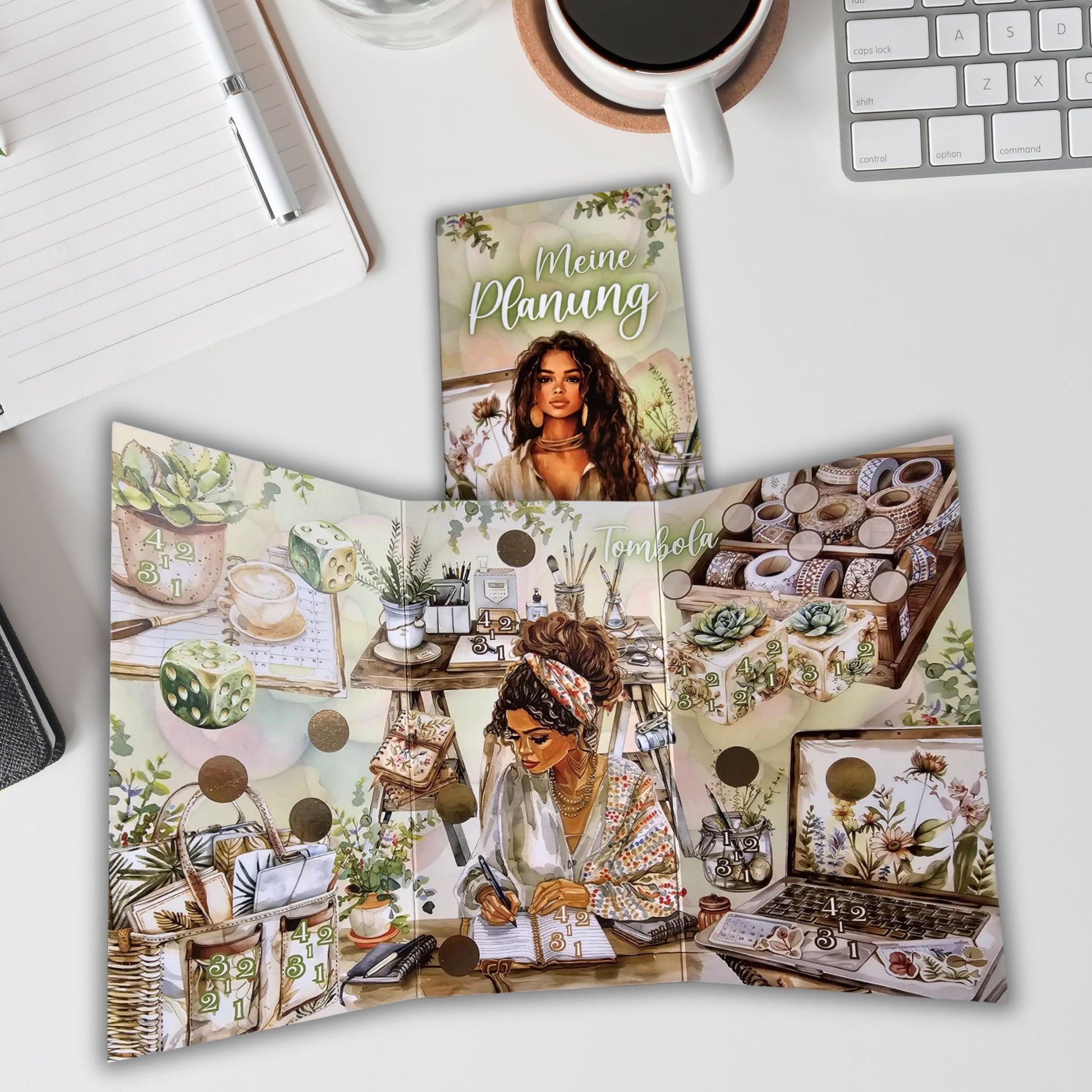 Mit dieser Klappkarte kannst du für deine Budgetsachen, Planer, Binder, Scrapbooking Bedarf usw sparen. Du kannst abstreichen, rubbeln, würfeln und wahlweise auch Lose ziehen. Spare in kleinen Beträgen. Auch unter den Rubbelstickern sind kleine Beträge von unter 10 Euro.