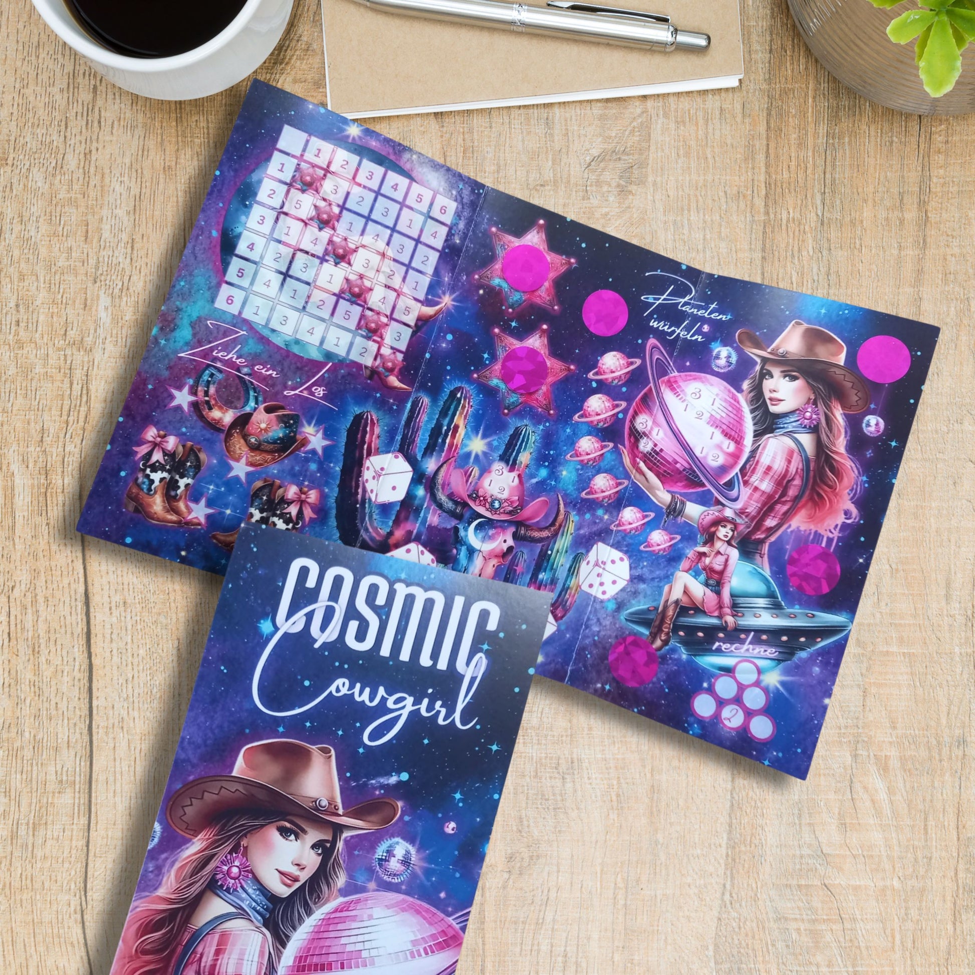 Mit dieser coolen Klappkarte kannst du in kleinen Beträgen und abwechsungsreich sparen. Du hast ein kleines Bingospiel, dass dich zu den Rubbelstickern führt. Außerdem kannst du würfeln, hast eine Rechenpyramide, etwas zum abstreichen und kannst wahlweise noch Lose ziehen und die Quersumme sparen. Auch unter den Rubbelstickern sind kleine Beträge von unter 10 Euro.