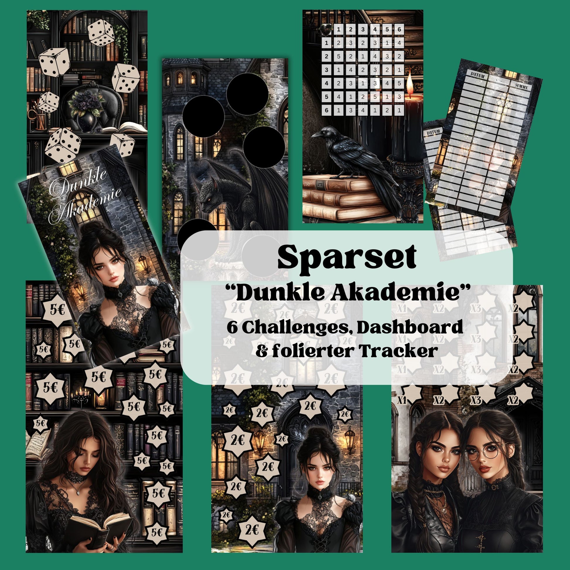 Das große Set zum sparen beinhaltet 6 Challenges zum abstreichen, würfeln, rubbeln und ein Bingospiel. Zusätzlich gibt es ein Dashboard mit einem matt folierten Tracker auf der Rückseite.
