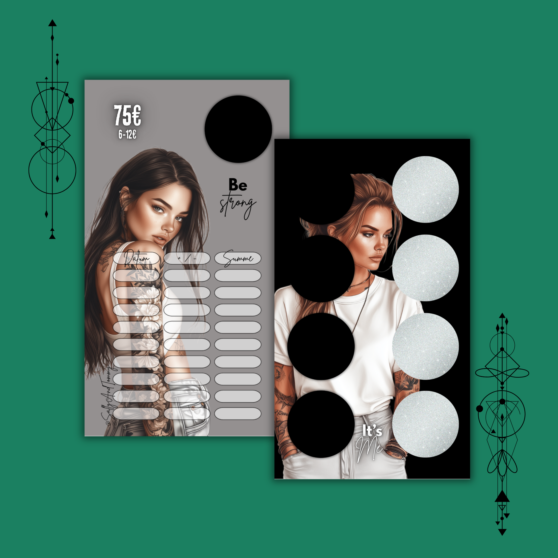 Mit dieser Rubbelchallenge lassen sich 75 Euro in kleinen Beträgen sparen. Ob für Shopping, Black Friday oder dein nächstes Tattoo Geld sparen. Die Challenge hat auf der Vorderseite einen speziellen glänzenden Effekt.