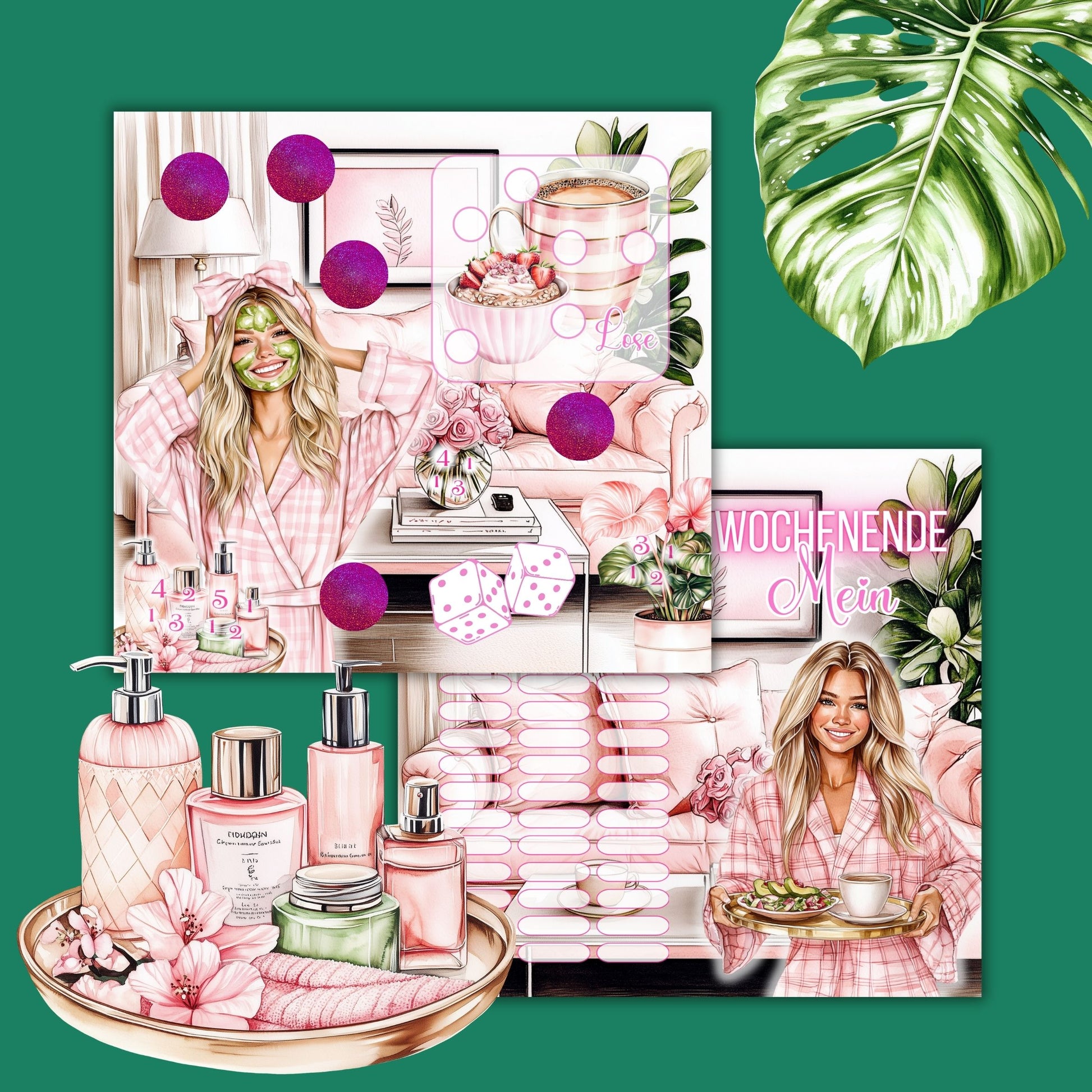 Du möchtest für deine Auszeit, Beauty und nur für dich sparen? Bei dieser Klappkarte kannst du rubbeln, abstreichen, würfeln und wahlweise Lose ziehen. Mädchenhafte Challenge im gemütlichen Design und kleinen Sparbeträgen.