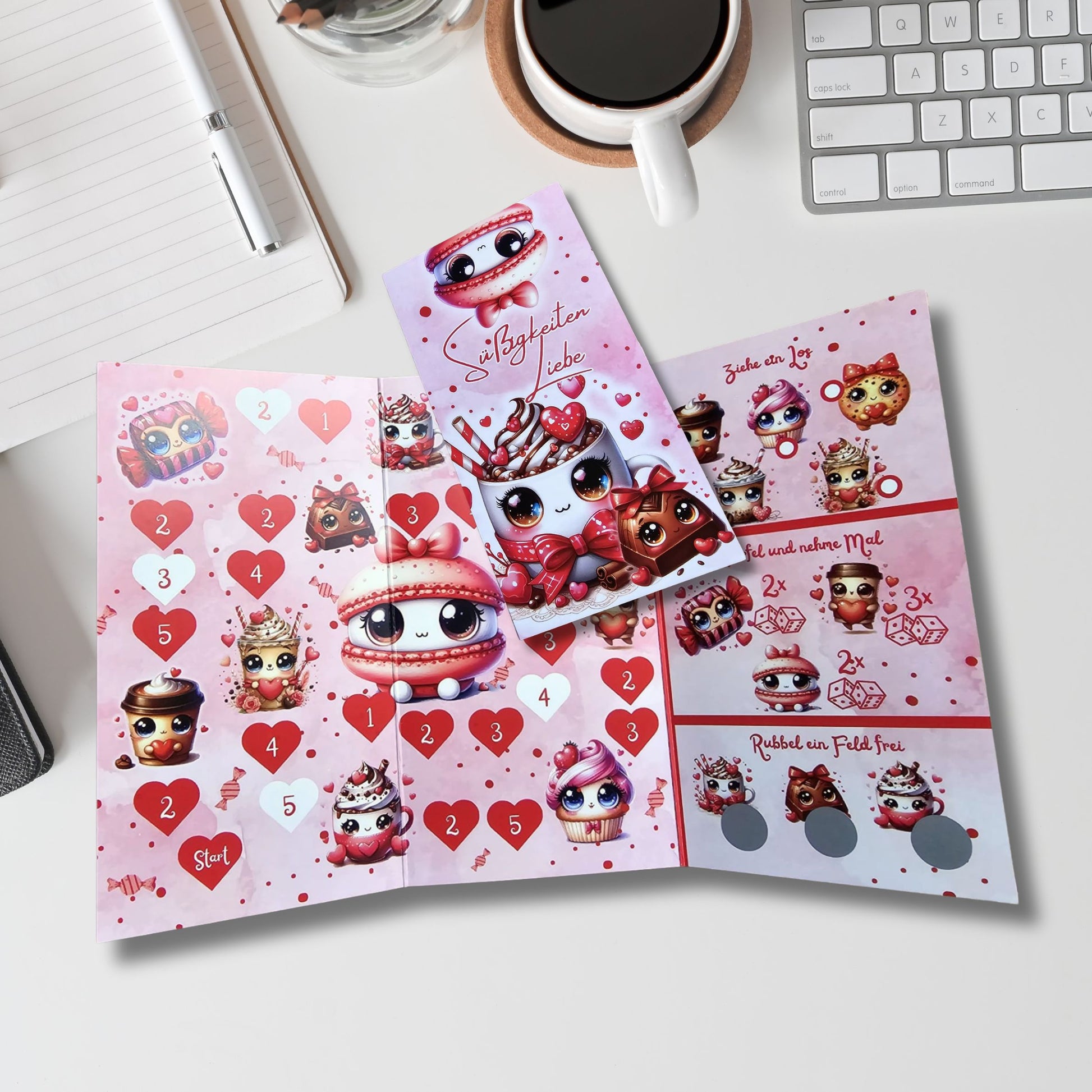 Mit dieser Challenge kannst du für Valentinstag, Hochzeitstag, Hochzeit oder Date Night sparen. Du fängst bei Start an und sparst dich Feld für Feld vorwärts. Kommst du auf ein Aktionsfeld, führst du die passende Aktion (würfeln, rubbeln, wahlweise Lose ziehen).