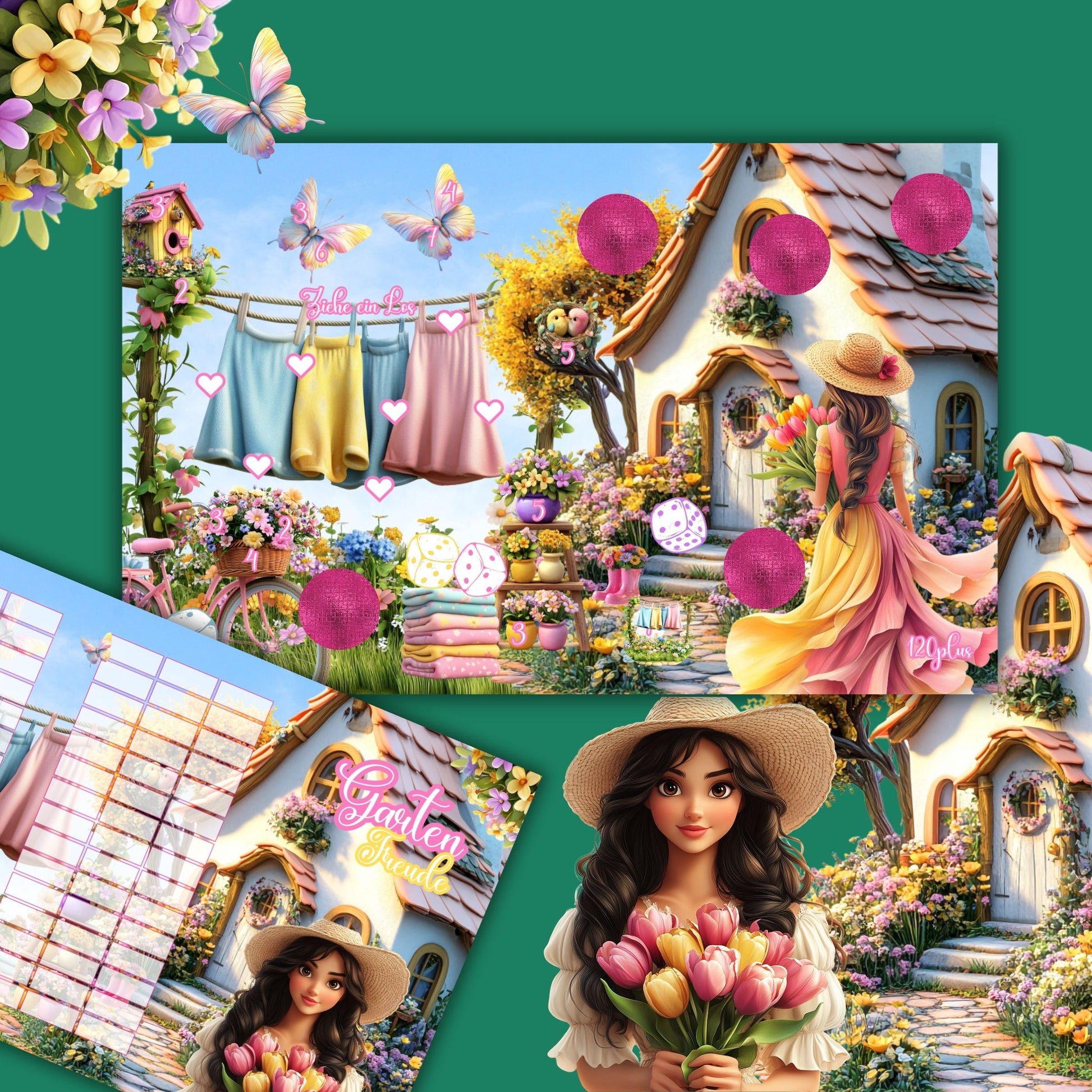 Spare mit dieser floralen Challenge in kleinen Beträgen für den Garten oder Balkon. Du kannst würfeln, abstreichen, rubbeln und wahlweise Lose ziehen.