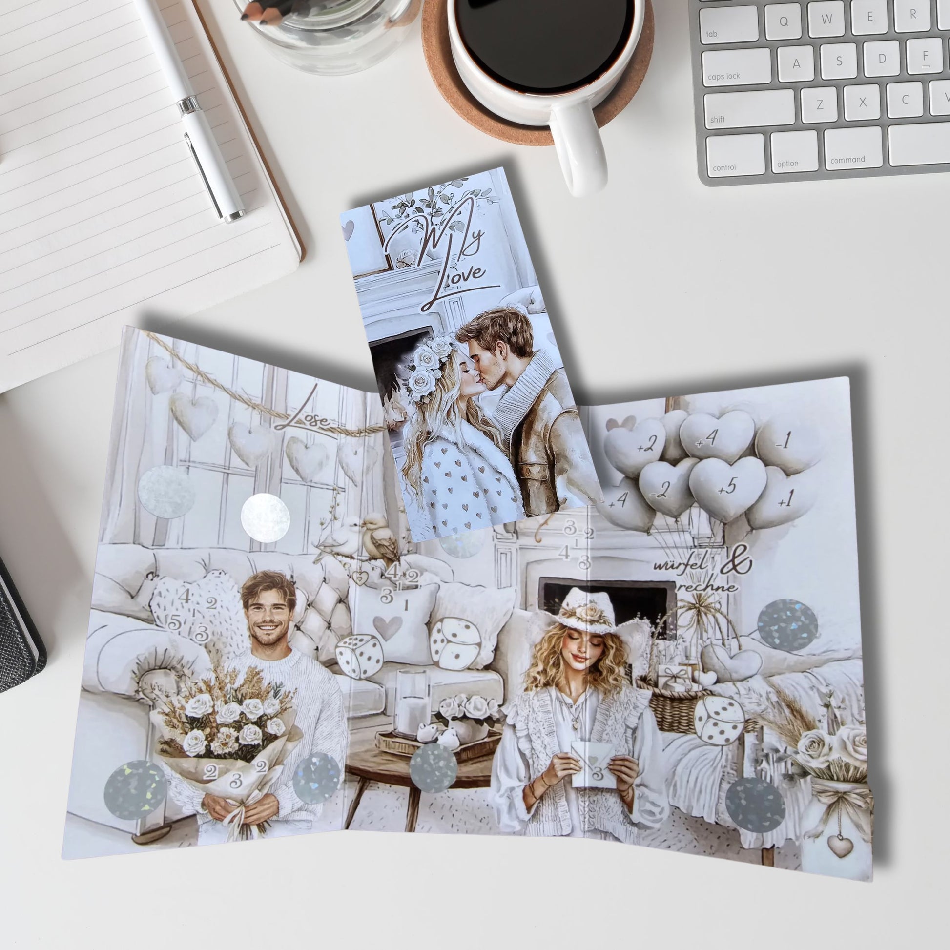 Mit dieser Challenge kannst du für Valentinstag, Hochzeitstag, Hochzeit oder Date Night sparen. Du kannst abstreichen, rubbeln, würfeln, rechnen und wahlweise auch Lose ziehen. Spare in kleinen Beträgen. Auch unter den Rubbelstickern sind kleine Beträge von unter 8 Euro.