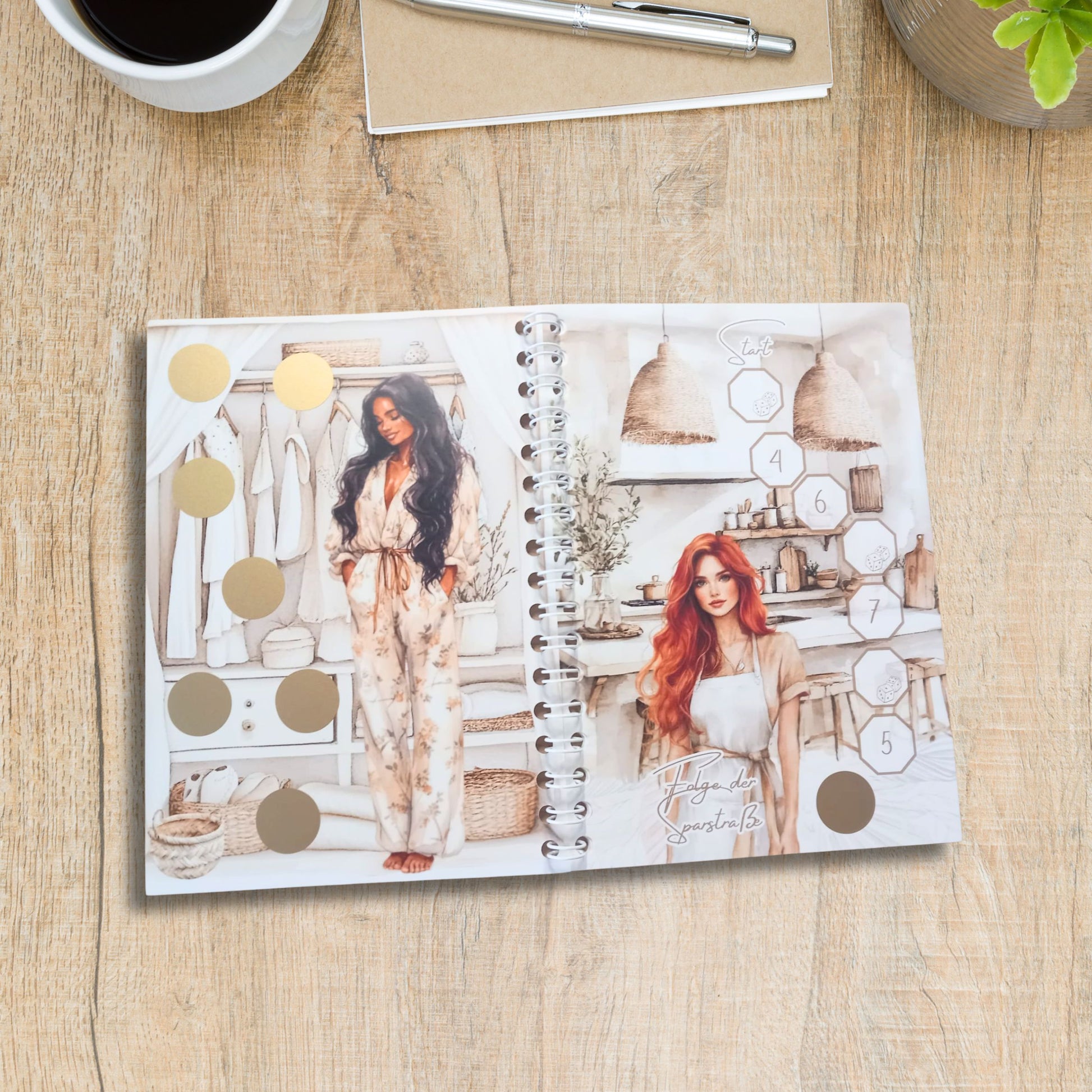 Mit diesem Sparbuch kannst du für dein Eigenheim, Wohnungseinrichtung, erste eigene Wohnung, Renovierung, Möbel etc. Geld sparen. Das Buch umfasst 10 Seiten mit Challenges. Darunter sind Aufgaben zum rubbeln, würfeln, rechnen, rätseln..... Dabei ist ebenfalls ein foliertes Dashboard und Tracker. Mit einen Folienstift beschreibbar und wieder abwischbar.
