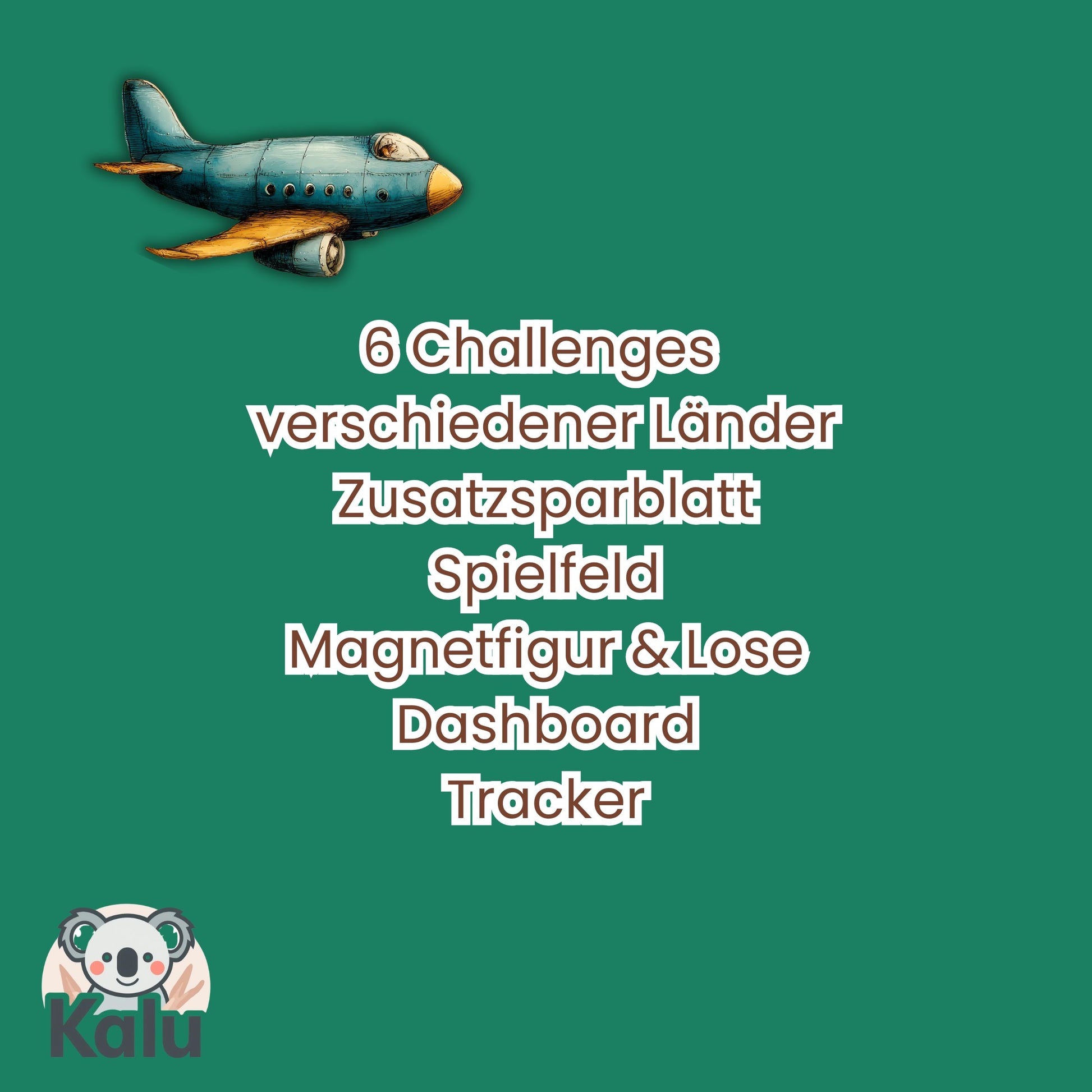 Reise durch sechs unterschiedliche Länder – jede Challenge hat ihren eigenen Stil, eigene Aufgaben und eigene Sparmechaniken. Ideal, um motiviert zu bleiben und Abwechslung ins Sparen zu bringen.