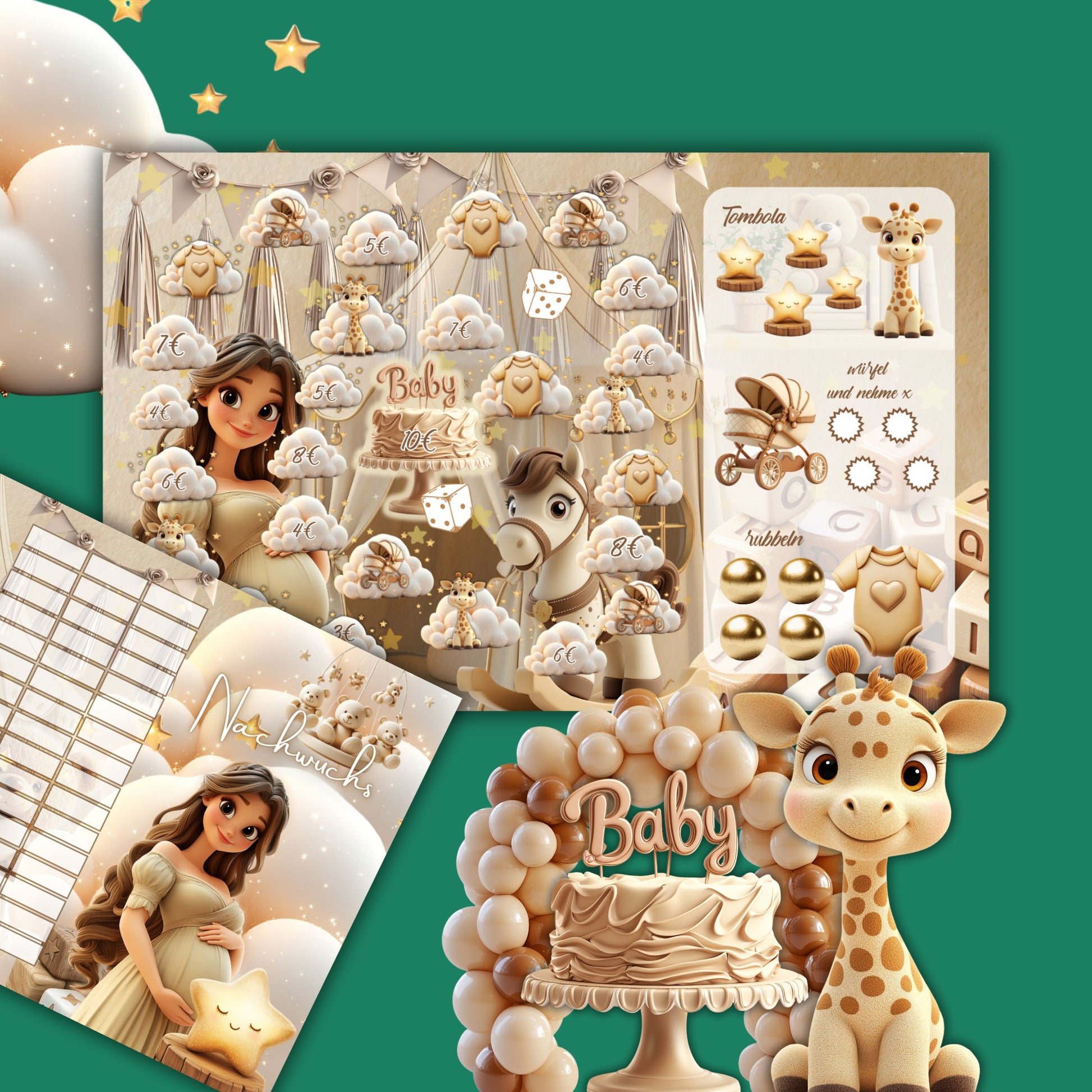 Mit dieser Challenge in Form einer Sparstraße kannst du für dein Baby, Enkelkind, Schwangerschaft oder auch Erstausstattung fürs Kind sparen. Du fängst bei Start an und sparst dich Feld für Feld vorwärts. Kommst du auf ein Aktionsfeld, führst du die passende Aktion (würfeln, rubbeln, wahlweise Lose ziehen) aus.