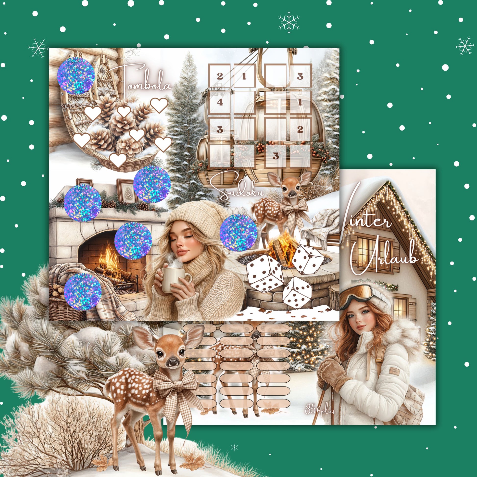 Bei dieser Klappkarte kann man würfeln, rubbeln, Sudoku rätseln und wahlweise auch Lose ziehen. Alle Beträge unter den Rubbelstickern liegen unter 10 Euro. Insgesamt kommst du auf eine Mindestsparsumme von 85 Euro.